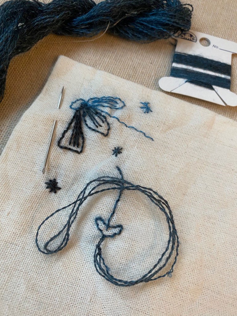 I’ve grown quite fond of the brightly coloured flora and fauna characteristic of the Jacobean style of embroidery (17th c). While the resources describing how to reproduce these styles are readily available and accessible, those describing the architecture of the yarns are much more limited. Understanding the relationship between the structure and fibre composition of a thread and its impact on hand stitching is definitely a realm I will be exploring in the future.